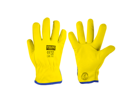 - Material en Cuero bovino de color amarillo y blanco con puño de seguridad. Grosor de 0,9-1,1mm.